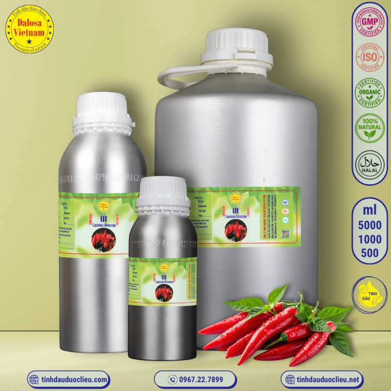Tinh dầu ớt – Capsicum Essential Oil là một sản phẩm tự nhiên với nhiều lợi ích sức khỏe, từ giảm đau, chống viêm cho đến tăng cường miễn dịch và cải thiện sức khỏe tim mạch. Công ty TNHH Tinh Dầu Thảo Dược Dalosa Việt Nam tự hào là doanh nghiệp hàng đầu tại Việt Nam cung cấp tinh dầu ớt nguyên chất, được nhập khẩu từ Ấn Độ, Indonesia và Việt Nam.